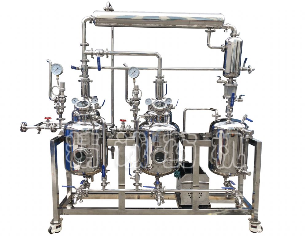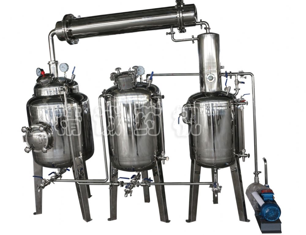 1、常壓提取、常壓濃縮,可根據(jù)用戶實(shí)際要求增減設(shè)備中間儲(chǔ)罐,無需真空泵,連接循環(huán)水泵即可,但人工收集集液罐里面的藥液,人工收集后再次倒入提取罐中再進(jìn)行提取或濃縮。