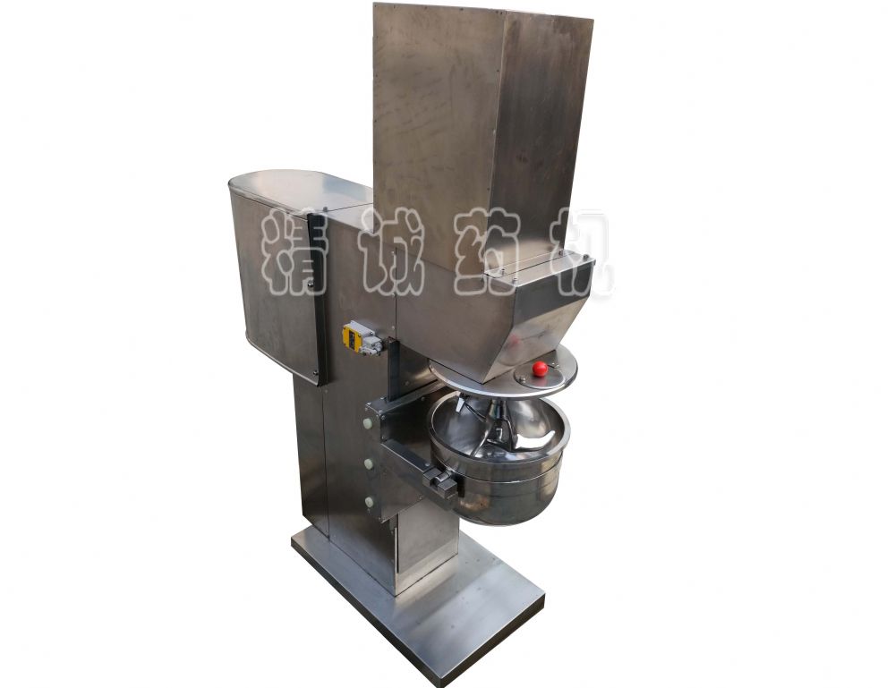 該機(jī)設(shè)備主要由制粒筒、攪拌槳、切割??和動力系統(tǒng)組成。當(dāng)原料、輔料和黏合劑進(jìn)入制粒筒并蓋封后,啟動電源,大攪拌槳的小切割??就按各自的軸進(jìn)行旋轉(zhuǎn)運(yùn)動,大攪拌槳主要使物料上下左右翻動并進(jìn)行均勻混合。小切割發(fā)則將物料切割成粒均勻的顆粒。由于混合制粒機(jī)制粒速度迅速且準(zhǔn)確,只需將電流表或電壓表與小切割??連接,根據(jù)電流或決壓讀數(shù)即能控制粒終點(diǎn)。它與傳統(tǒng)的制粒工藝相比黏合劑用量可節(jié)約15%-25%。高速攪拌制粒機(jī)采用全封閉操作,在同一容器內(nèi)混合制粒,工藝縮減,無粉塵飛揚(yáng),符合GMP要求。