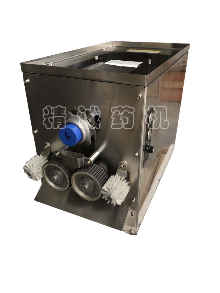 打開電源開關(guān),啟動(dòng)推料開關(guān),調(diào)整好推料速度,加入藥坨待藥條光滑后,啟動(dòng)切丸、搓丸開關(guān),調(diào)整切丸速度使其與推料速度匹配,將藥條引入制丸刀槽中,即可工作。