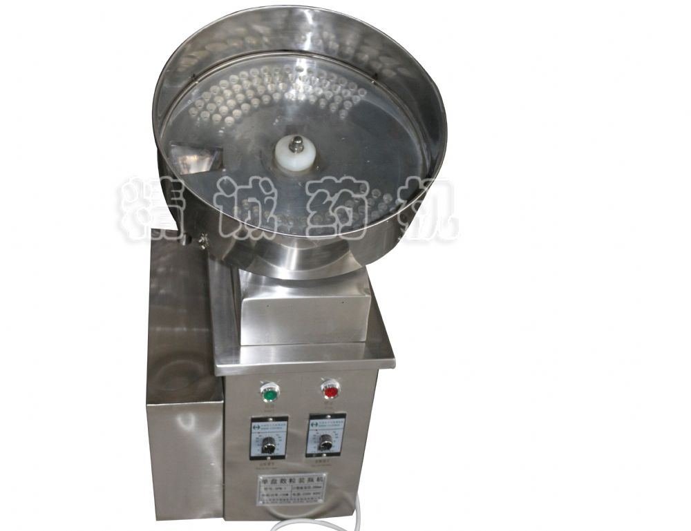 SPN膠囊數(shù)粒裝瓶機(jī)又名單盤膠囊數(shù)粒裝瓶機(jī),該機(jī)體積小、重量輕、噪音小、計(jì)數(shù)準(zhǔn)確、操作簡便,保養(yǎng)維修簡單。藥品接觸部位采用不銹鋼制作,保證了包裝物品的潔凈,符合GMP要求;是對膠囊等藥品或食品進(jìn)行計(jì)數(shù)、裝瓶的較理想專用設(shè)備。該機(jī)采用電磁振動數(shù)片,瓶未到下料口處時數(shù)片盤不轉(zhuǎn)動,藥瓶放置下料口處時,電機(jī)驅(qū)動數(shù)片盤轉(zhuǎn)動使藥物自動進(jìn)入瓶中;更換不同規(guī)格型號計(jì)數(shù)盤方便快捷,無需作其它調(diào)節(jié)。本機(jī)是目前計(jì)數(shù)機(jī)械中較小型、美觀且經(jīng)濟(jì)適用的計(jì)數(shù)裝瓶、裝袋設(shè)備。