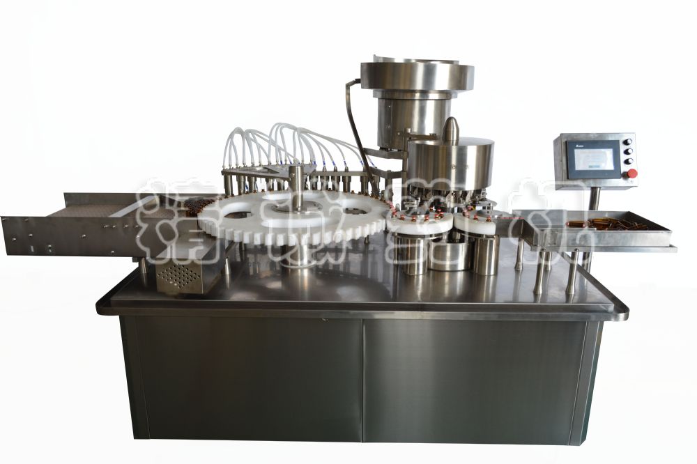 本機(jī)是灌裝、軋蓋二機(jī)合一的高速灌封機(jī),適用于各種10ml~30ml玻璃瓶的液體灌裝和軋蓋。機(jī)器采用潛入式灌裝機(jī)構(gòu),灌裝時(shí),灌裝頭自動(dòng)伸入瓶?jī)?nèi),液體無(wú)溢出;機(jī)器采用高精度計(jì)量機(jī)構(gòu),不銹鋼單向閥門,灌裝計(jì)量調(diào)整方便;組合式灌裝管路及灌裝組件,拆卸、消毒十分方便;根據(jù)不同的蓋子,軋蓋力大小可以調(diào)整,保證瓶蓋外觀封口美觀;采用變頻調(diào)整系統(tǒng),能方便地適應(yīng)各種不同規(guī)格的瓶子及不同粘度液體灌裝的不同需求。